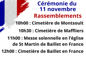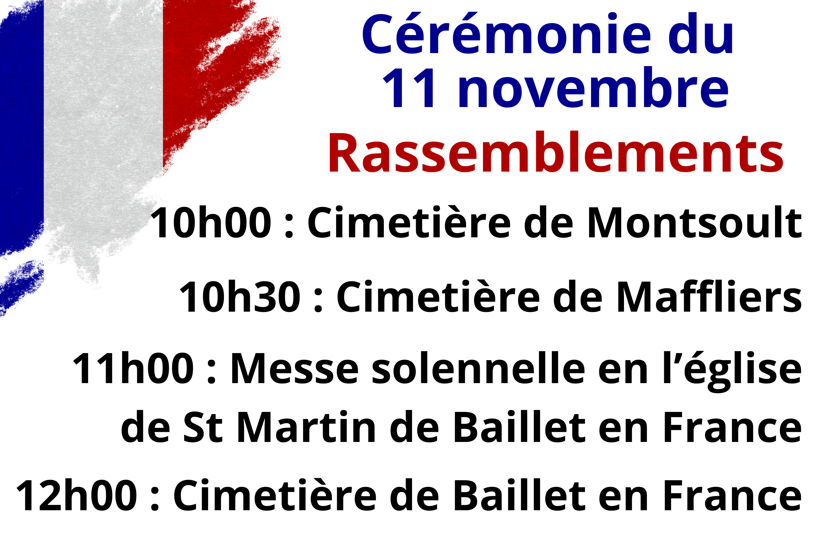 Comme chaque année, les communes de Montsoult, Maffliers et Baillet-en-France s’unissent pour commémorer l’Armistice du 11 novembre 1918.