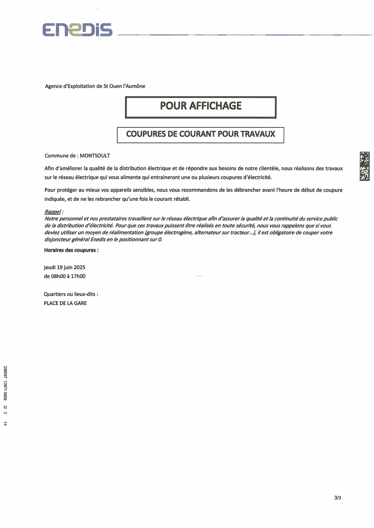 COUPURES DE COURANT POUR TRAVAUX 🔌