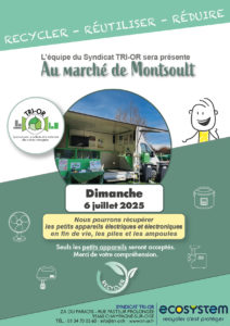 L’équipe du Syndicat TRI-OR sera présente au marché de Montsoult le dimanche 6 juillet 2025 pour une opération spéciale de collecte de petits appareils électriques et électroniques.
