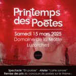 Dans le cadre de la 27ème édition du Printemps des Poètes, votre réseau intercommunal de bibliothèques vous invite à célébrer la poésie le samedi 15 mars 2025 au Domaine de la Motte à Luzarches !